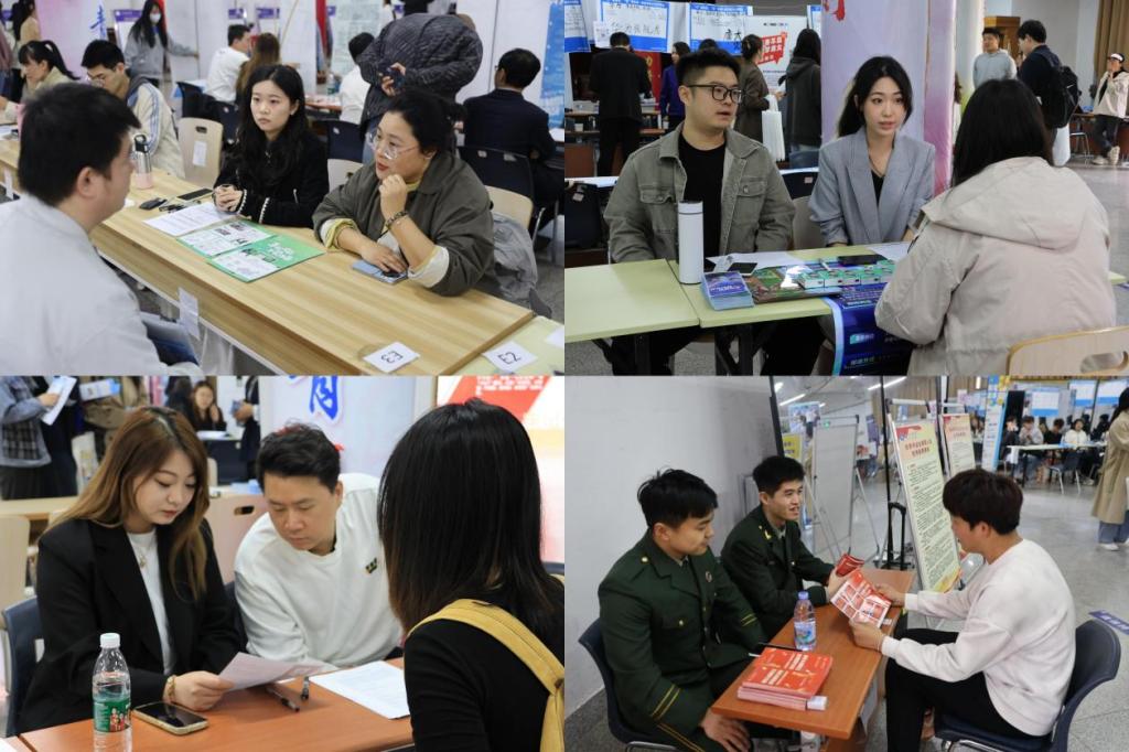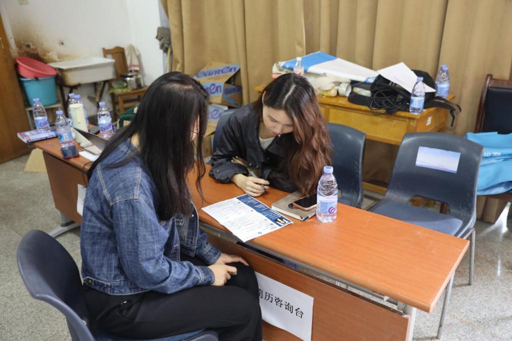 招聘会现场设置职业咨询台、简历优化、面试训练、大学生征兵服务咨询等一站式服务。参会学生热情高涨,积极应聘,携带面试简历主动与招聘单位交流。学院辅导员现场为毕业生“把脉问诊”,提供一对一简历诊断服务,帮助学生挖掘闪光点,完善简历内容,规范简历书写,突出竞争优势。
