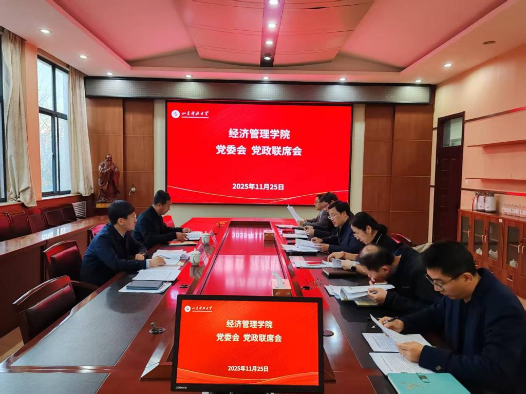 学院党委会严格落实“第一议题”制度,共同学习了《求是》杂志发表的习近平总书记重要文章《纵深推进全国统一大市场建设》,专研究了意识形态工作,并深入学习了意识形态相关重要内容,研究了“嵙先锋”党建品牌优培计划“双创”培育创建工作。党政联席会研究了学院2026届毕业生就业工作方案、学院实习就业一体化推进工作方案、与青岛顺丰速运有限公司合作工作方案并做出决议,通报了学院北京校友会筹建有关事宜。