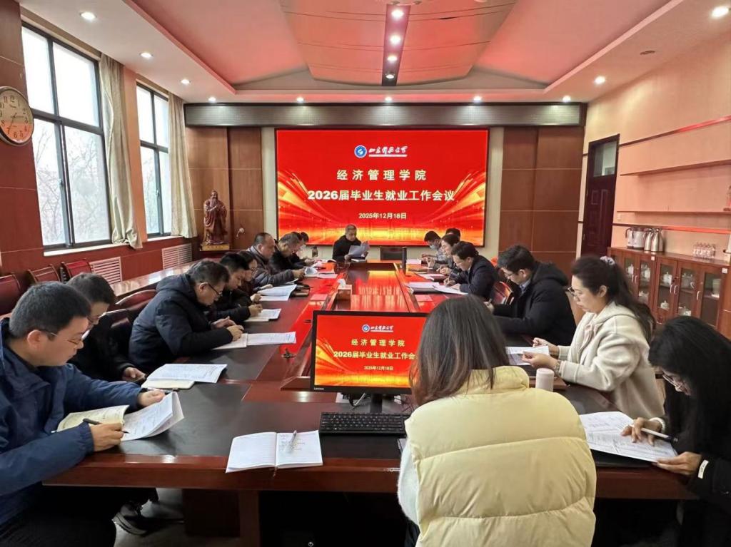 为深入贯彻党中央、国务院关于高校毕业生就业工作的决策部署,全面落实学校就业工作要求,精准有效应对当前复杂严峻的就业形势,12月18日,经济管理学院于学院三楼会议室召开2026届毕业生就业工作会议。学院党委书记庄兴华、党委副书记江谭、副院长马有才、饶卫振,以及各系党支部书记、系主任、2026届毕业生辅导员参加会议。