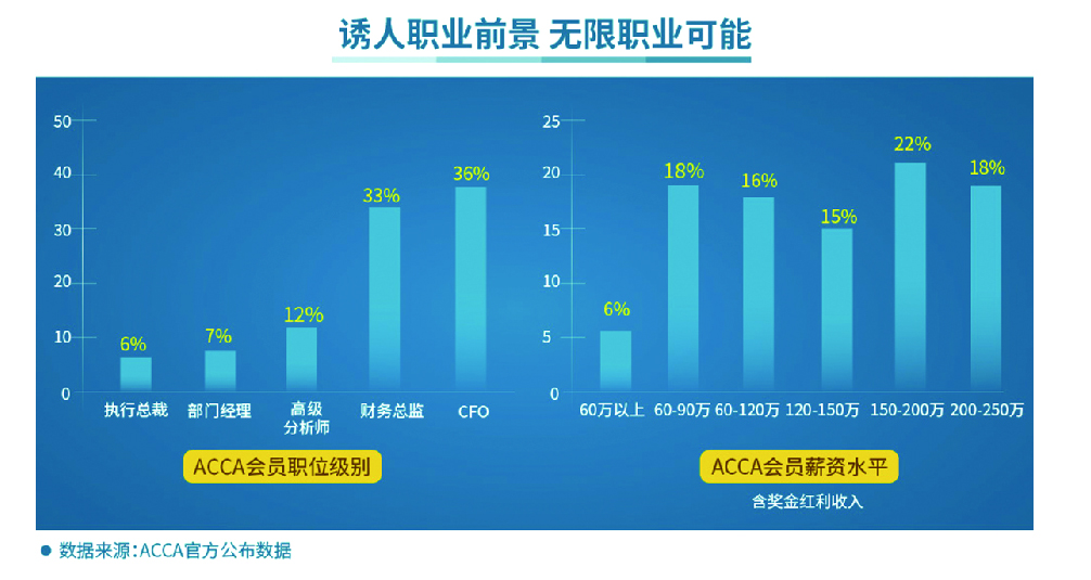 ACCA受到雇主和市场的广泛认可,包括通信科技、生产制造、快消零售、金融服务、新能源、公共事业以及专业会计师事务所等行业,为财会人才的职业发展提供高品质支持。ACCA会员从事财务、财务管理和金融分析咨询等工作,ACCA认可雇主企业会给予公司职员报考ACCA考试费用和带薪休假参加考试等支持,还会对ACCA会员/学员优先录用,其中主要为世界500强企业和国内外知名会计师事务所。